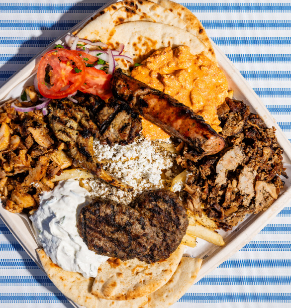 Not sure what to choose? Custom plates are the ultimate way to curate your Greek dining experience. Start by picking a base like fluffy rice or greens. Then, choose from our selection of proteins, which are grilled to perfection. Options include classic gyros, crispy fritters, or souvlaki fresh off the grill. Finally, bring it all together with toppings and sauces like fries, salad, pilaf, and more.